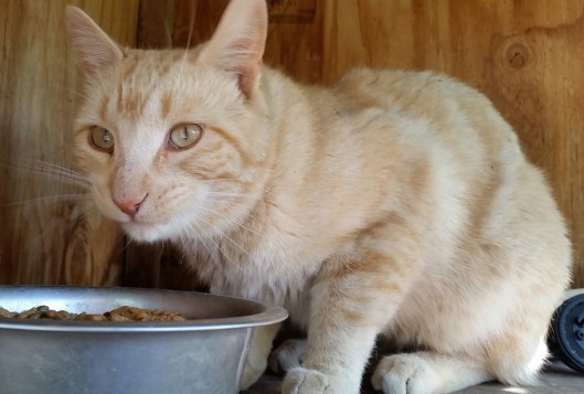 This ORANGE guy showed up out of nowhere, not fixed, made himself at home and even started bullying around the other cats!! So what could we do, other than get him neutered and name him Donald Trump? Sorry!! If this is upsetting to you, you can just call him Donald. 🙂